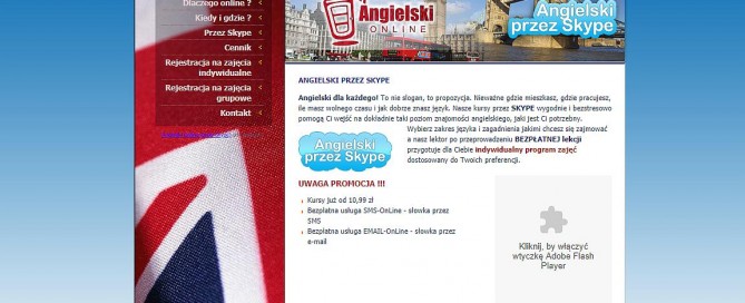 Teksty promocyjne prowadzące stronę internetową firmy oferującej kursy angielskiego prowadzone online (za pomocą komunikatora Skype).